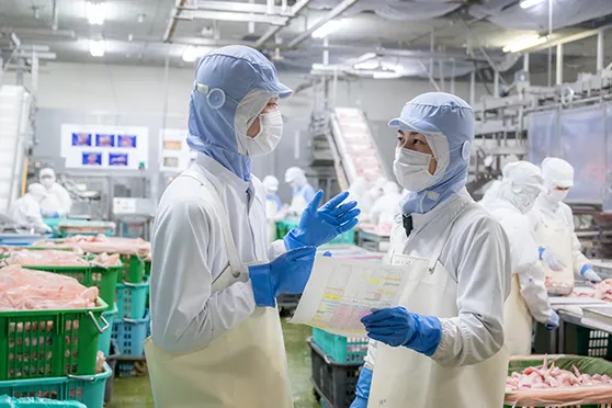 スーパーへ買い物に行った時、当社の製品をお客様が手に取っている姿を見ると「ありがたいな」と感じます。新鮮でおいしい肉を提供していますが、お客様の目線に立ち、もっと良い製品を作りたいです。工場で何年か経験を積んだら総合職になって、当社の幅広い職種を一通り経験したいです。農場では、健康な鶏をひなから育てる。営業部門では、店頭で求められている製品をリサーチする。全ての経験を、お客様のニーズに応えることにつなげていきたい。そんな気持ちを原動力に、ステップアップしたいです。