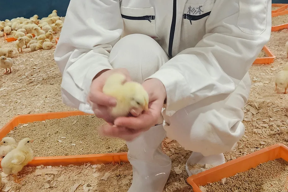 飼育に携わるにあたり、「五感でさまざまなことを感じることが大切」と教わりました。鶏の小さな変化はもちろん、鶏舎のにおいや温度、空気などをしっかりと感じ取り、適正な環境を保つ方法を自身で判断するように心掛けていますし、分からないことがあったら先輩や上司に聞いています。何よりも自分が関わった鶏が、大手スーパーや外食チェーンを通して多くの皆さんに届くことはやはり嬉しいですし、誇りに思っています。