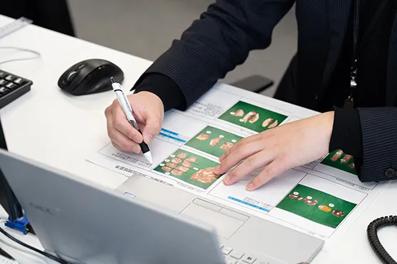 御取引先に提案するまでには、営業職の私が先方の要望を聞き取り、商品開発グループに伝えてサンプルを作ってもらいます。その後、「先方から修正点を聞き、社内で改善し再提案する」ということを何度も繰り返します。橋渡しをしながら異なる意見を摺り合わせていくことは難しく大変ですが、御取引先の要望に向き合う熱意が、新しいものを生み出すエネルギーになっています。