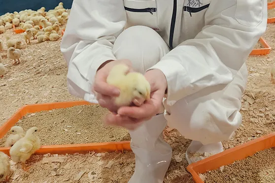飼育に携わるにあたり、「五感でさまざまなことを感じることが大切」と教わりました。鶏の小さな変化はもちろん、鶏舎のにおいや温度、空気などをしっかりと感じ取り、適正な環境を保つ方法を自身で判断するように心掛けていますし、分からないことがあったら先輩や上司に聞いています。何よりも自分が関わった鶏が、大手スーパーや外食チェーンを通して多くの皆さんに届くことはやはり嬉しいですし、誇りに思っています。