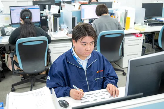 仕事では、タイムリーな情報発信やコミュニケーションを大事にしています。部署の性質上、情報を早く手に入れて、工場と営業所、運送会社さんへ早く伝えることが重要です。