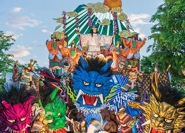 300年以上の歴史と伝統を持ち、ユネスコ無形文化遺産、重要無形文民俗文化財に指定されており東北を代表する夏祭りの一つです。豪華絢爛な山車27台が市内をねりあるき夜間運行では提灯やライトで照らされて幻想的な雰囲気が楽しめます。